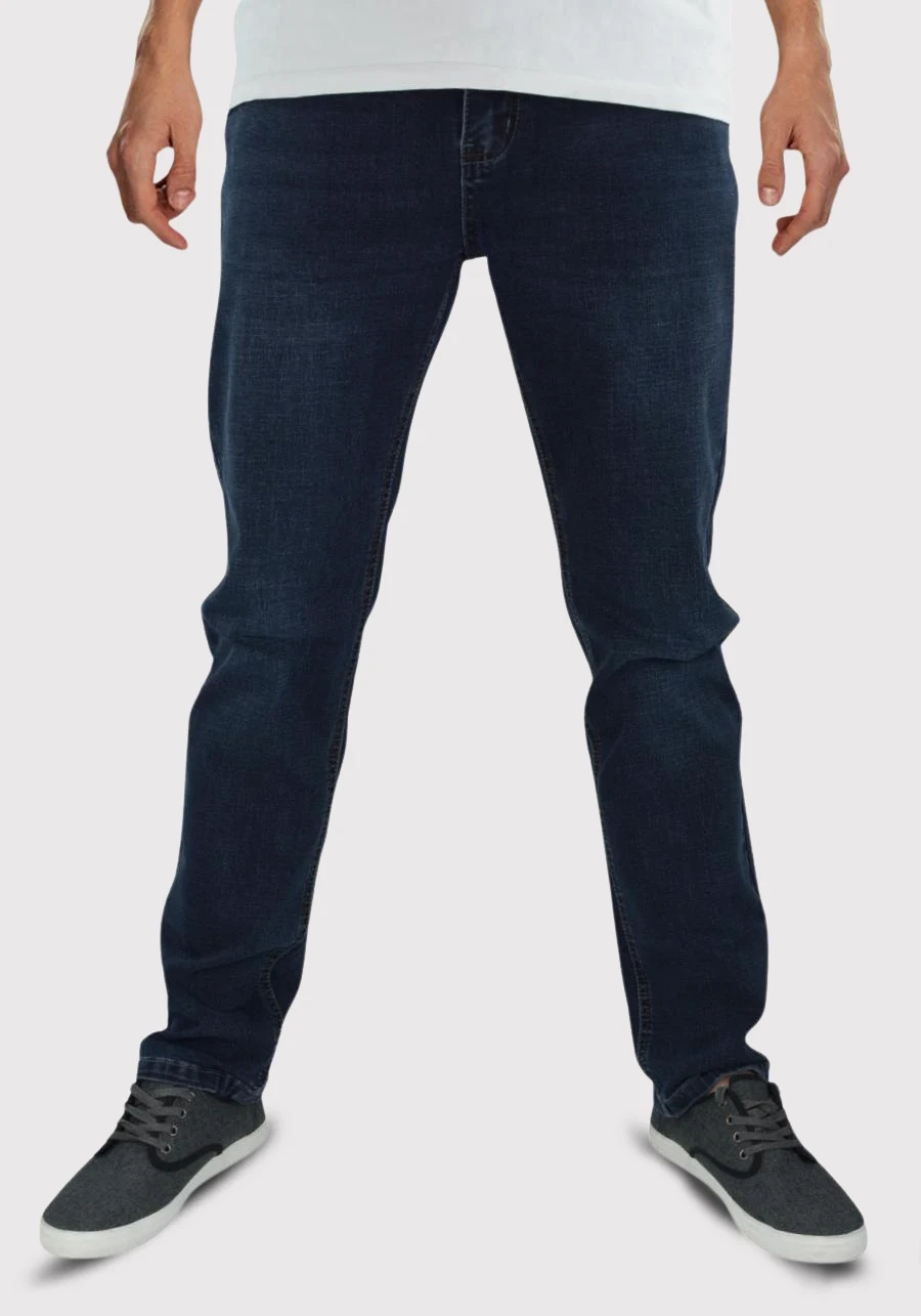 Jeansy męskie dla wysokich (do 210 cm wzrostu) oraz niskich lub standard, ciemnoniebieskie M044