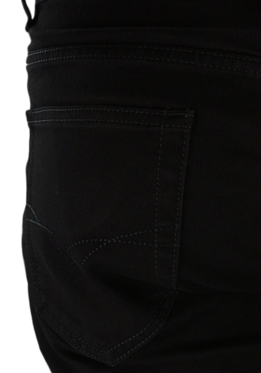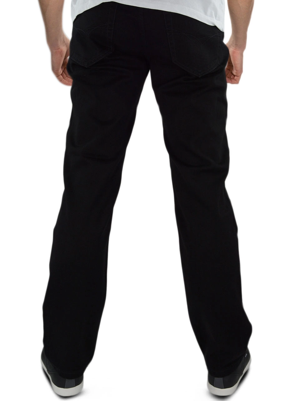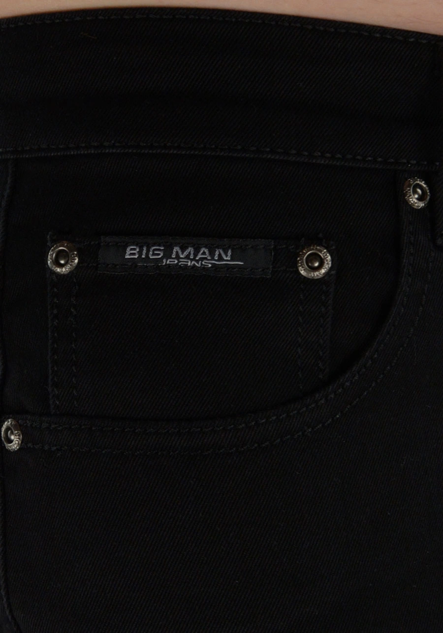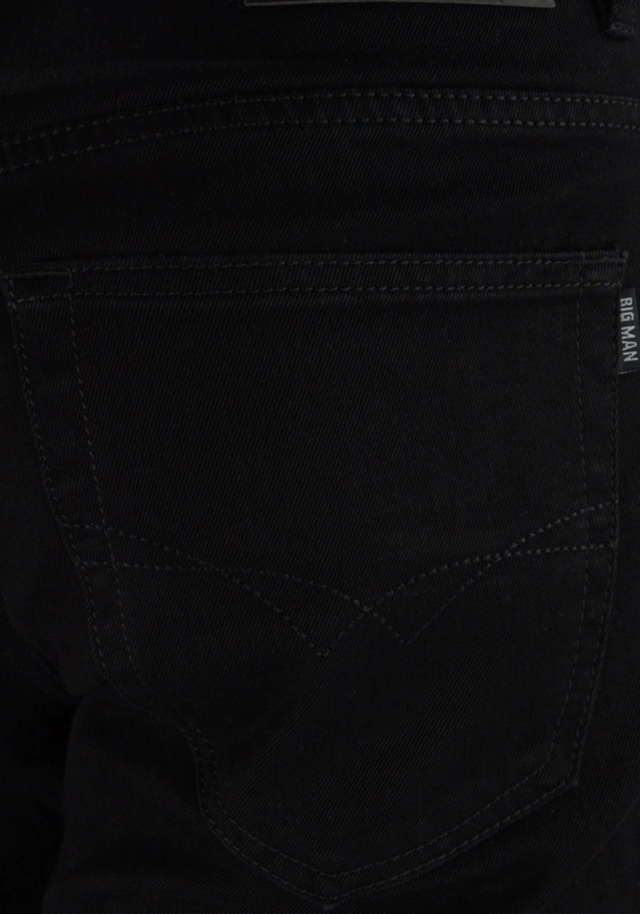 Spodnie męskie czarne dla wysokich (wzrost do 210 cm), niskich, otyłych lub regular. Długie, proste nogawki. Duże rozmiary (do 130 cm w pasie), wysoki stan - M105