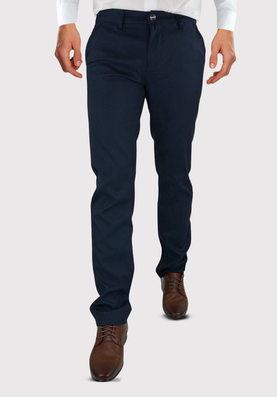 Granatowy kolor to ponadczasowa klasyka, która doskonale komponuje się z eleganckimi koszulami czy marynarkami, tworząc idealny zestaw zarówno do pracy, jak i na bardziej formalne okazje.