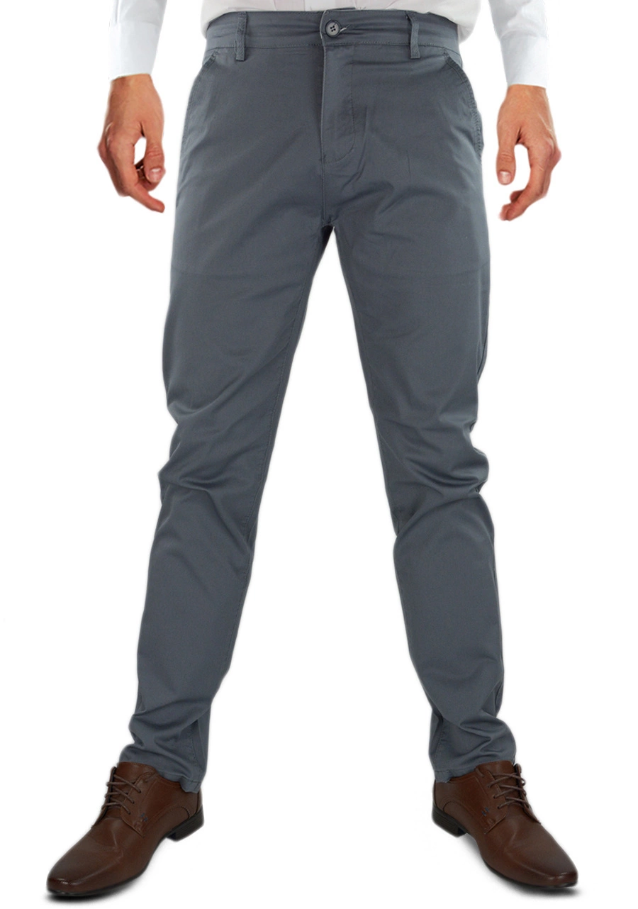 Spodnie męskie szare chinosy. Materiałowe, bawełniane, rozciągliwe, dla niskich, regular lub oversize - V41